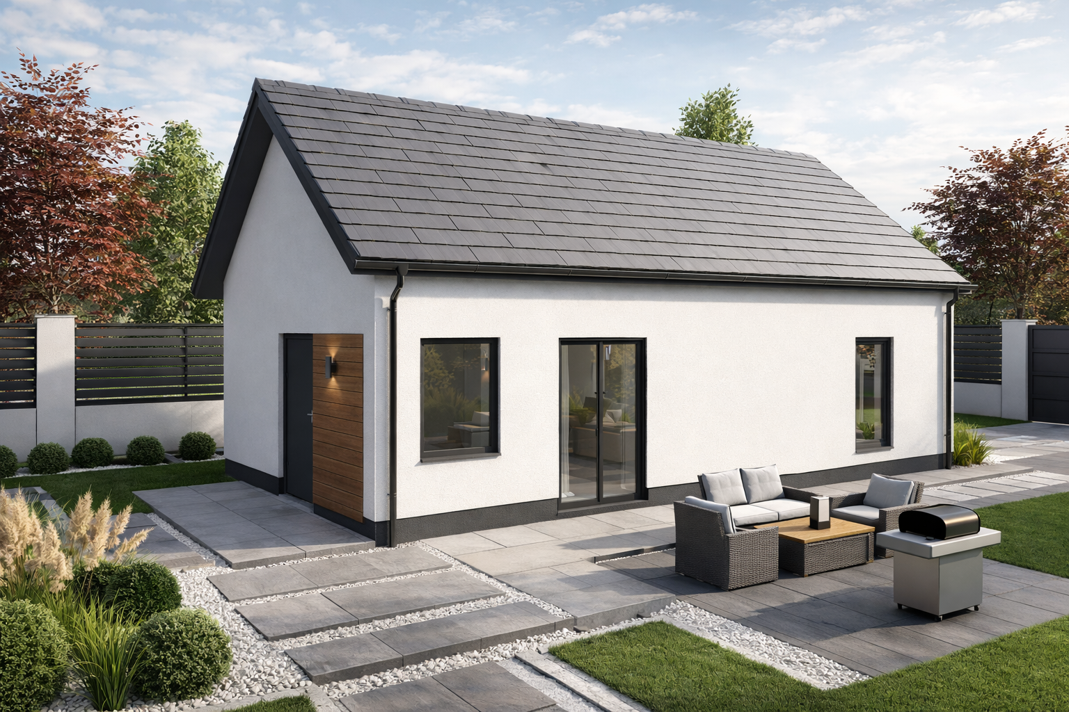 A kisebb alapterület alacsonyabb építési és fenntartási költséget jelent, így ideális választás első otthonnak, befektetésnek vagy nyaralónak is.